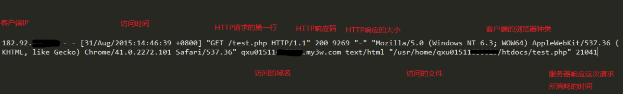 看服务器响应请求的时间,就是访问日志的最后一列,这里的时间单位是微秒,例如上图的示例中,访问时间不到一秒(1秒=1000000微秒),一般访问时间不应超过3秒(3000000微秒),访问时间长同样会导致并发访问量过大,适当的优化程序可以减少服务器的具体响应时间。具体访问的文件也在网站日志中有展示。如上图,如果网站访问日志中的最后一列超过3000000,也就是3秒,则需要检查和优化访问的具体文件,如上图的 test.php。